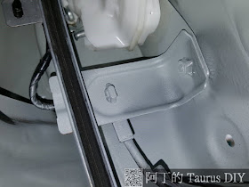 這是後車門的玻璃導槽支架。這支架有烤漆過,跟前門不一樣。